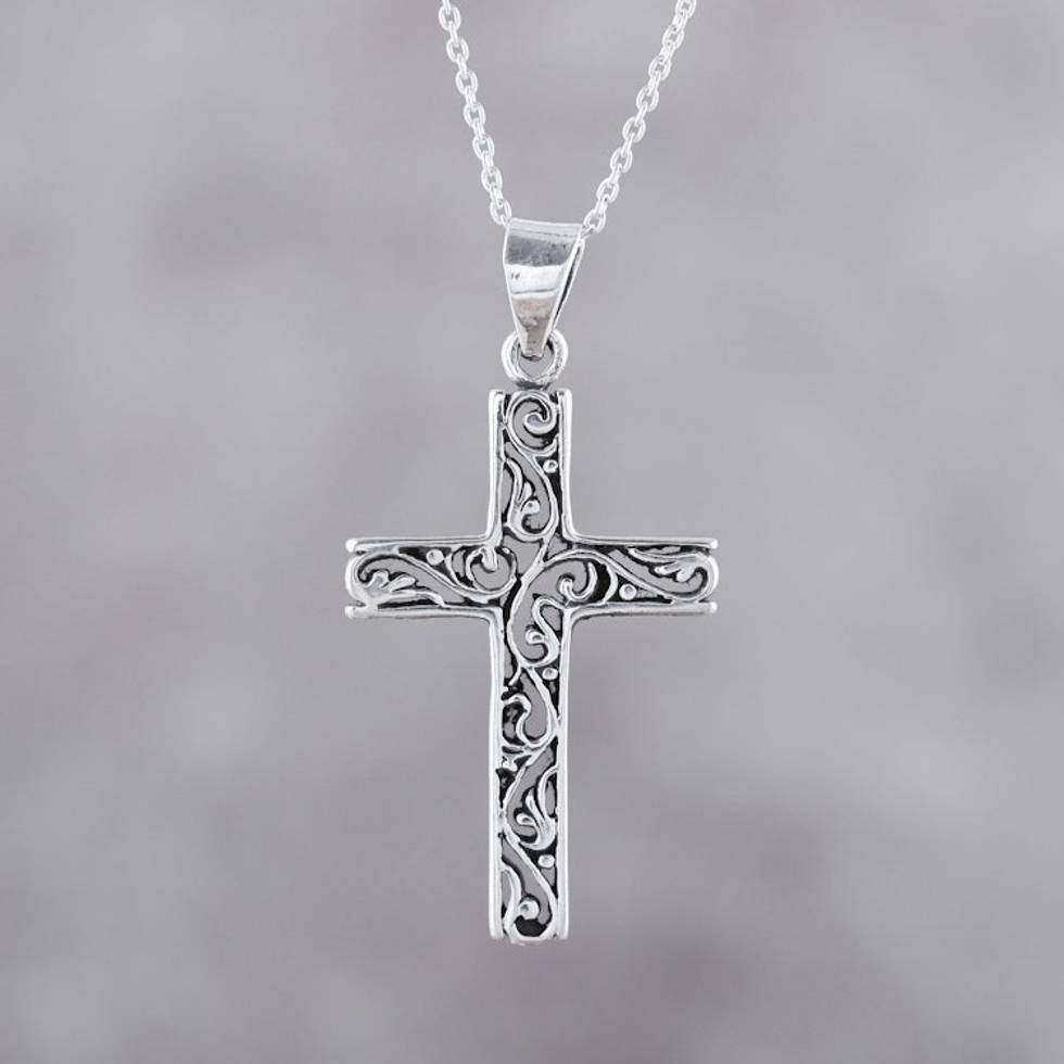 Handcrafted Sterling Silver Ornate Cross Pendant Necklace 'Adorned Cross' Item ID: 2669924132