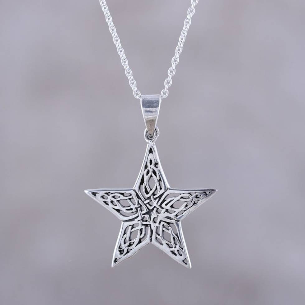 Handcrafted Sterling Silver Ornate Star Pendant Necklace 'Guiding Light' Item ID: 2669955754