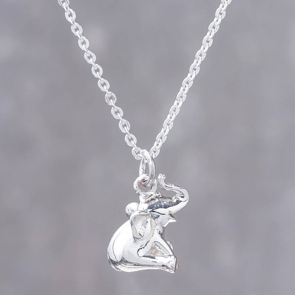 Handcrafted Sterling Silver Pendant Necklace 'Laughing Elephant' Item ID: 2671803159