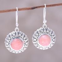 Handcrafted Sterling Silver Pink Opal Round Dangle Earrings 'Pink Renewal' Item ID: 2671790850