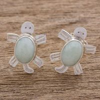 Handcrafted Sterling Silver Sea Turtle Jade Earrings 'Apple Green Marine Turtles' Item ID: 2671778278