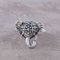 Handcrafted Sterling Silver Smiling Elephant Cocktail Ring 'Delighted Elephant' Item ID: 2676664762