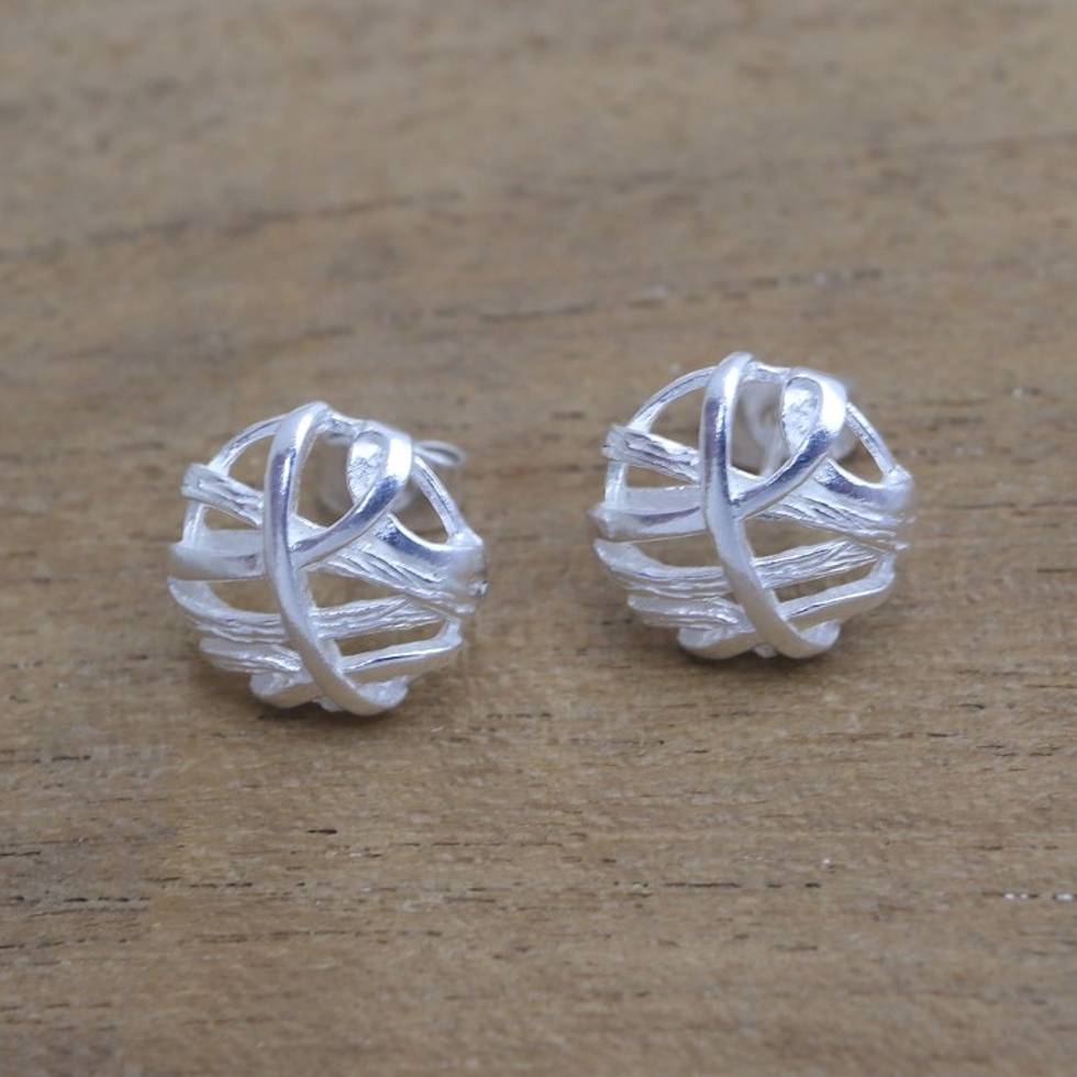 Handcrafted Sterling Silver Stud Earrings from Bali 'Balinese Fabric' Item ID: 2669923352