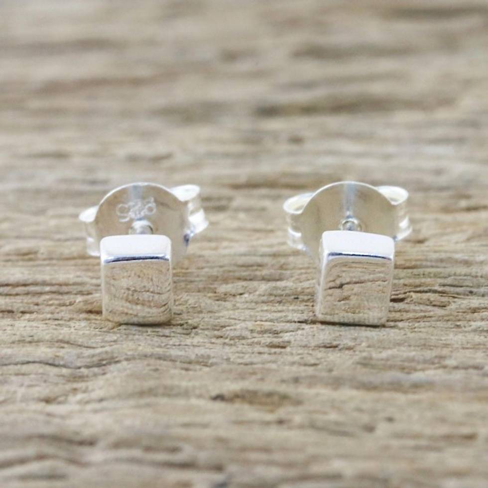 Handcrafted Sterling Silver Stud Earrings from Thailand 'Silver Cubes' Item ID: 2669926637