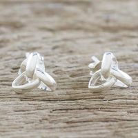 Handcrafted Sterling Silver Stud Earrings from Thailand 'Silver Trinity' Item ID: 2669930474