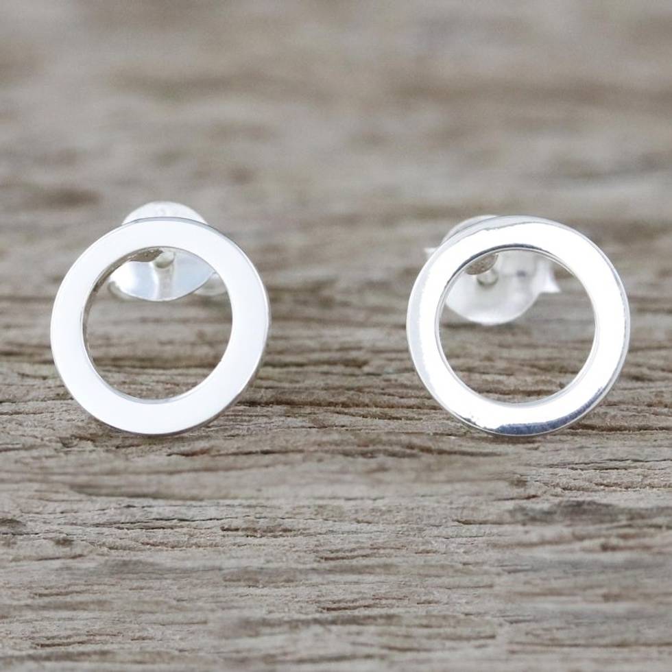 Handcrafted Sterling Silver Stud Earrings from Thailand 'Simple Circles' Item ID: 2669926385