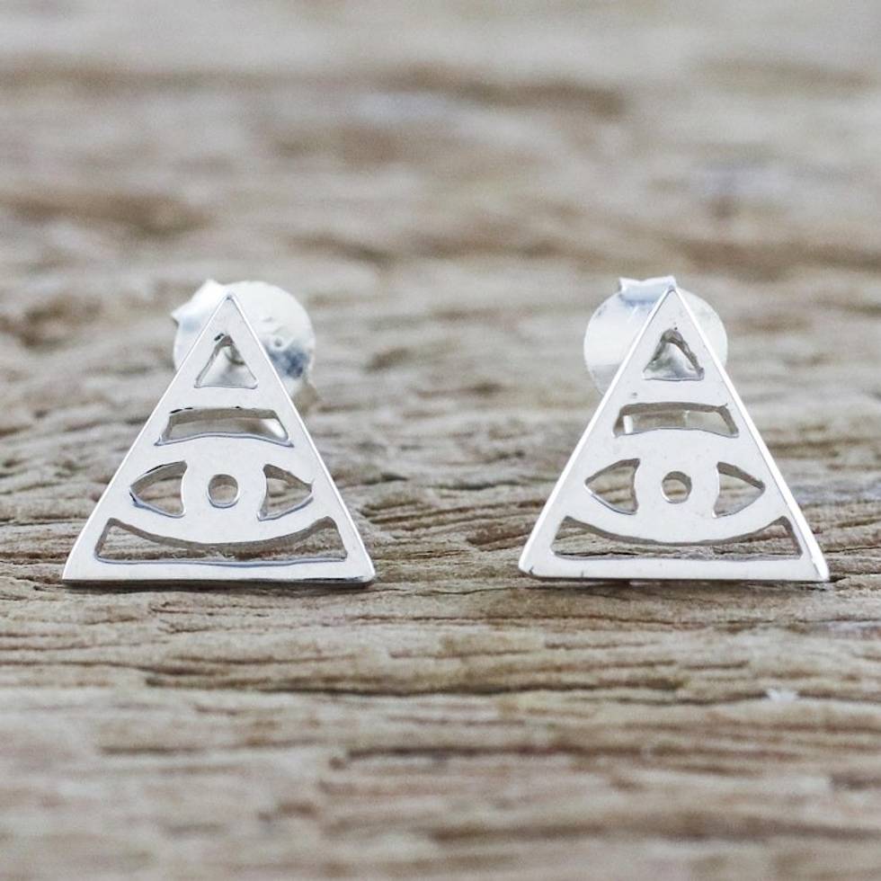 Handcrafted Sterling Silver Stud Earrings from Thailand 'Open Eyes' Item ID: 2671800723