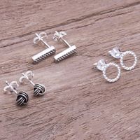 Handcrafted Sterling Silver Stud Earrings Set of 3 'Early Riser' Item ID: 2671800461