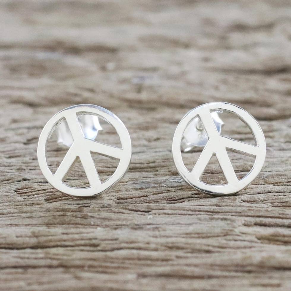 Handcrafted Sterling Silver Stud Earrings with Peace Sign 'Sign of Peace' Item ID: 2669930654