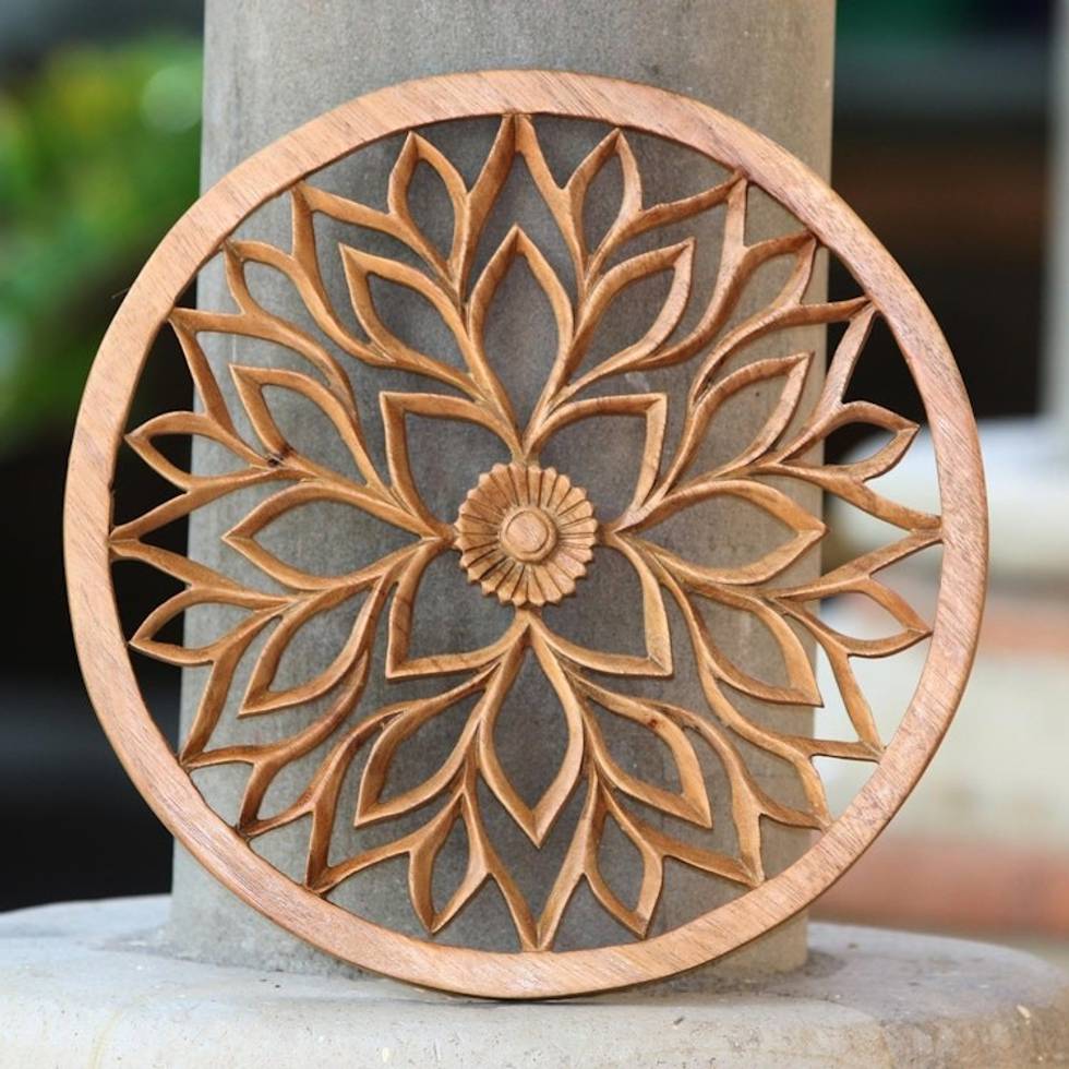 Handcrafted Suar Wood Floral Relief Panel from Bali 'Petaled Energy' Item ID: 2671734364