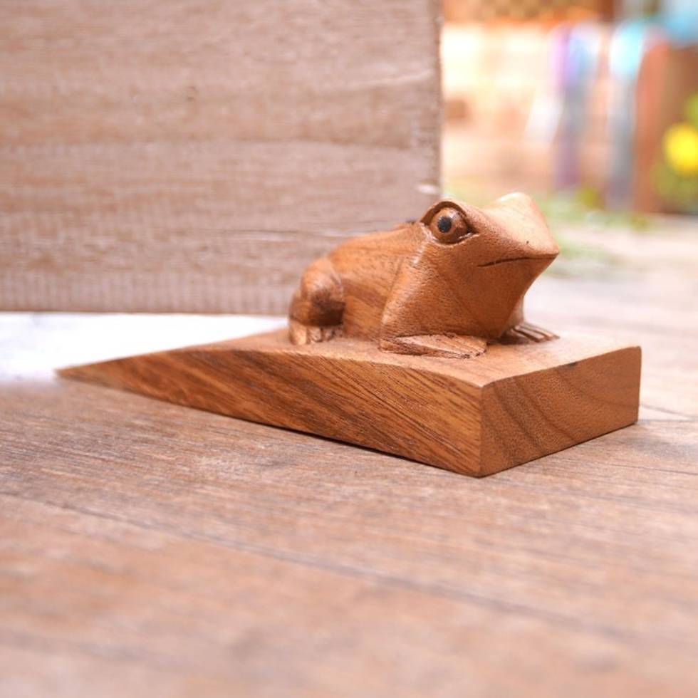 Handcrafted Suar Wood Frog Doorstop in Brown from Bali 'Helpful Toad in Brown' Item ID: 2671734188