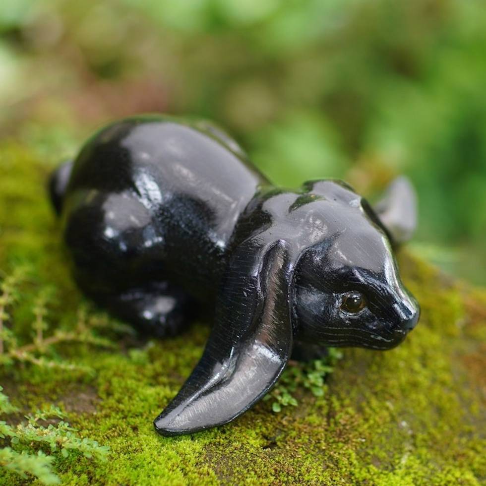 Handcrafted Suar Wood Rabbit Sculpture in Black from Bali 'Begging Rabbit in Black' Item ID: 2671734210
