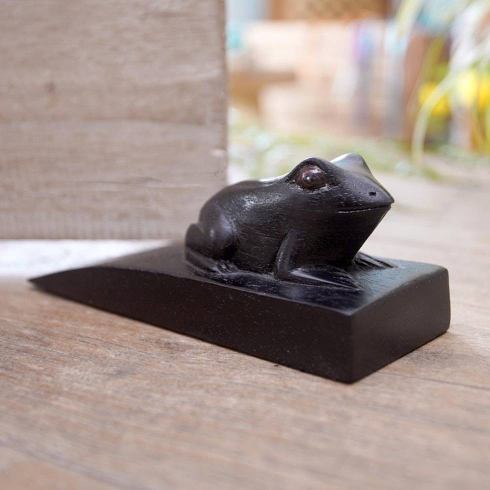 Handcrafted Suar Wood Toad Doorstop in Black from Bali 'Helpful Toad in Black' Item ID: 2671734366