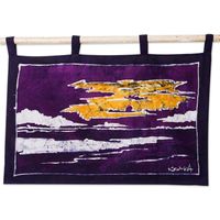 Handcrafted Sunset Cotton Wall Hanging in Purple Hues 'Sunset Beach I' Item ID: 2671805242