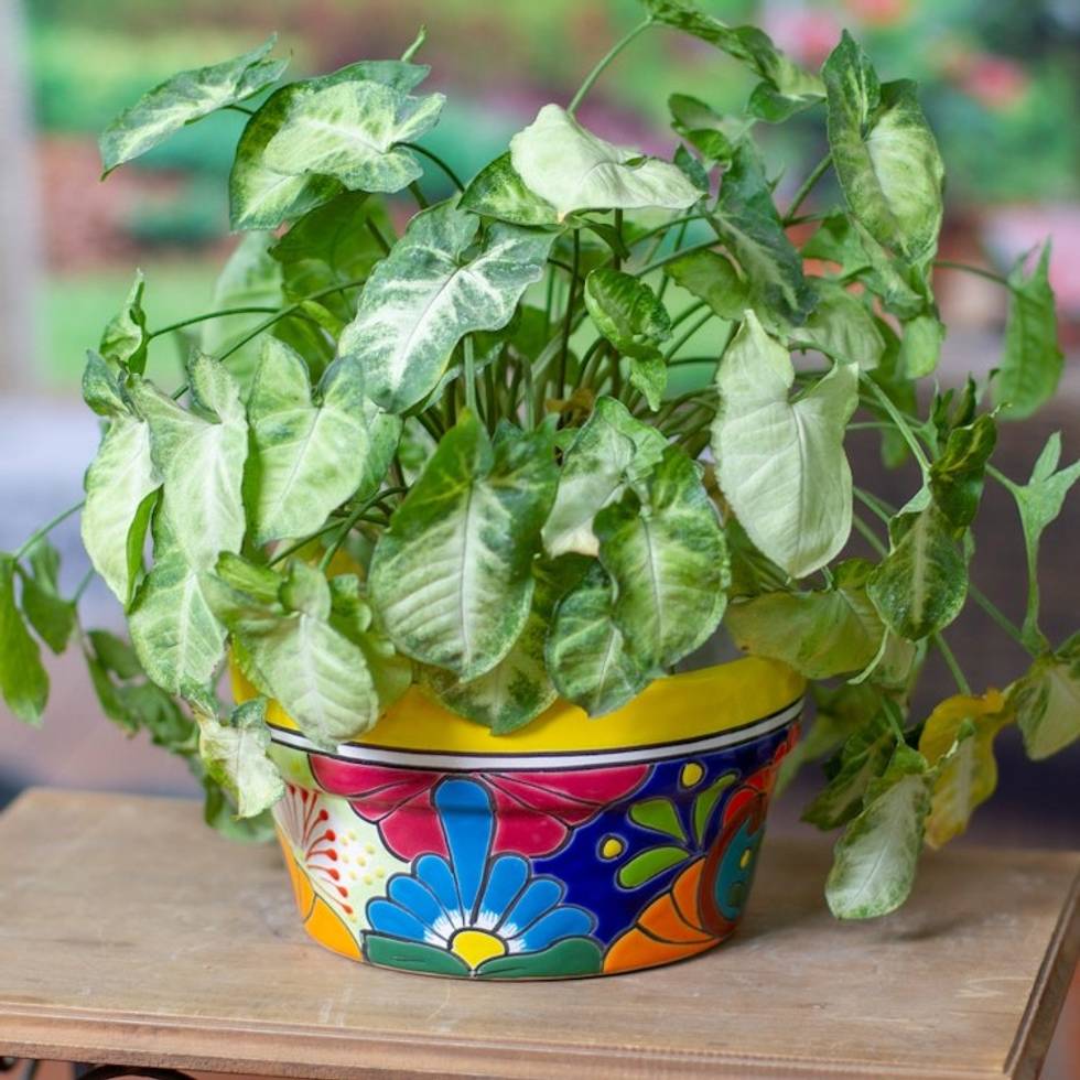 Handcrafted Talavera Ceramic Flower Pot Painted in Jonquil 'Jonquil Days at the Hacienda' Item ID: 2671807485