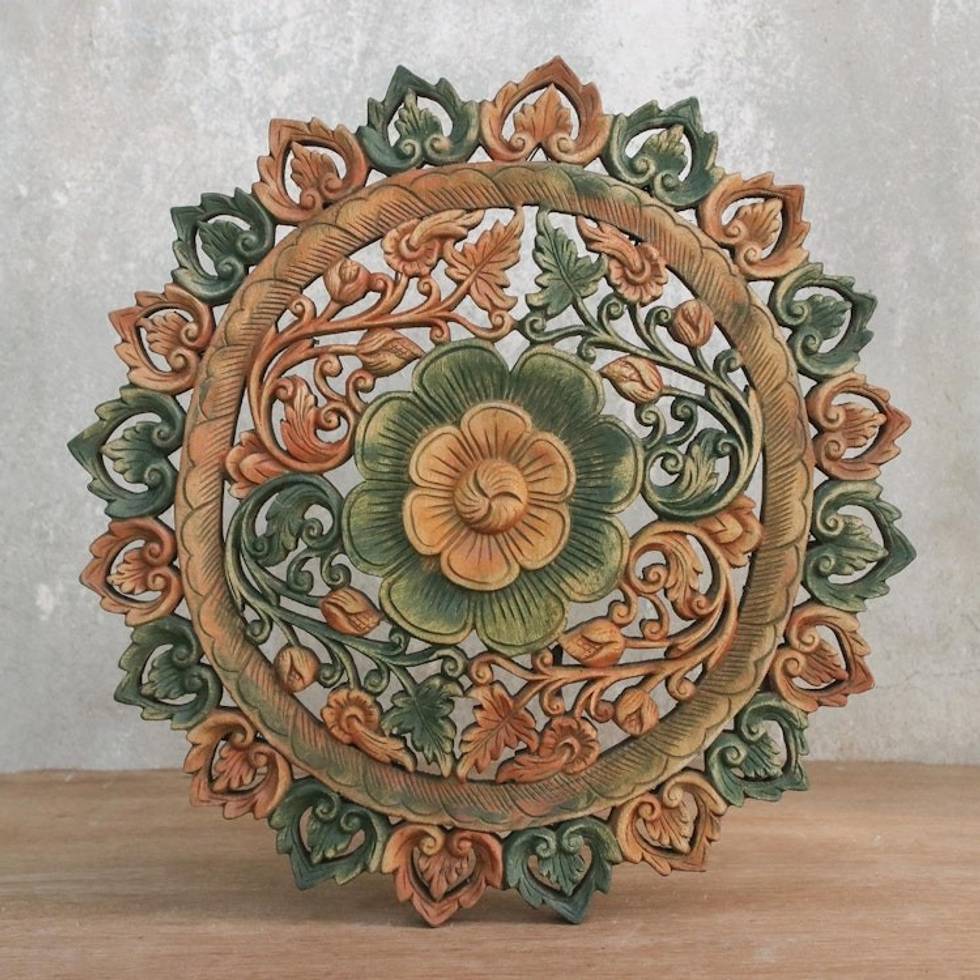 Handcrafted Teak Relief Panel 'Blossom Prayer' Item ID: 2671802582