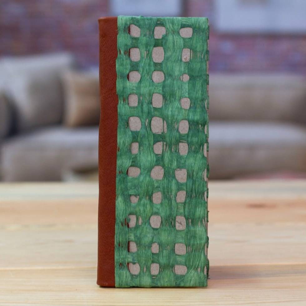 Handcrafted Teal Amate Paper Notebook with Suede Accents 'Teal Thoughts' Item ID: 2671807827