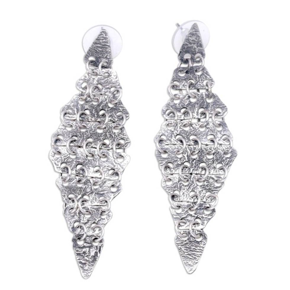Handcrafted Textured Sterling Silver Waterfall Earrings 'Cascade of Modernity' Item ID: 2671748581