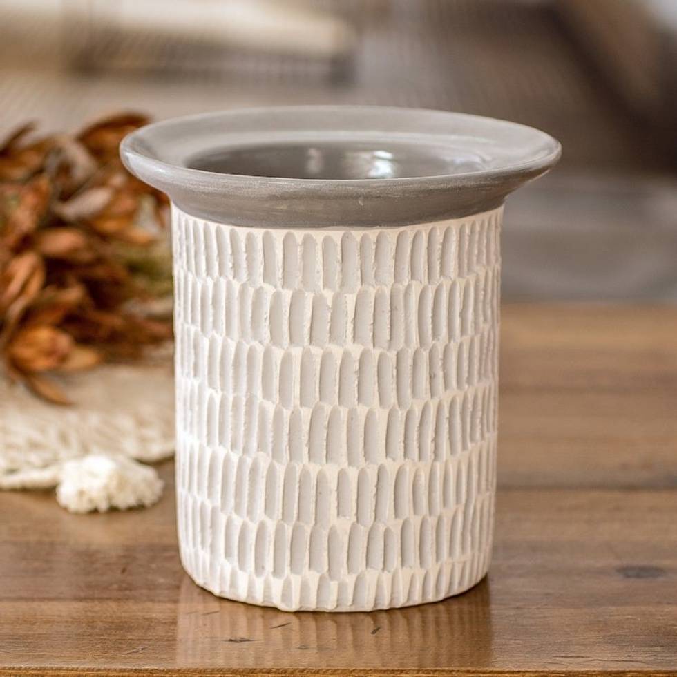 Handcrafted Textured Watertight Ceramic Vase from Guatemala 'Art and Elegance in Grey' Item ID: 2671768836