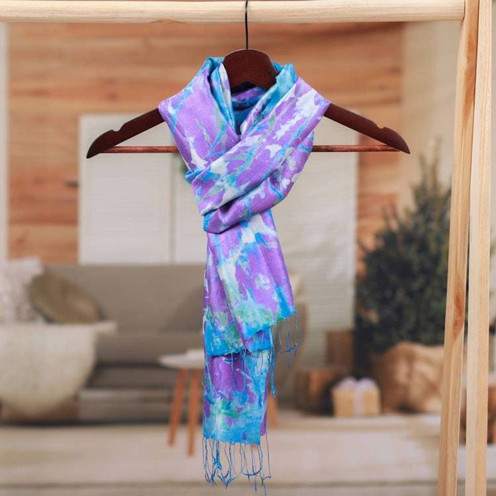 Handcrafted Tie-Dyed Abstract Patterned 100 Silk Scarf 'Charmed Sea' Item ID: 2676653272