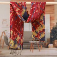 Handcrafted Tie-Dyed Patterned 100 Silk Scarf Medium 'Lava Sea' Item ID: 2671796883