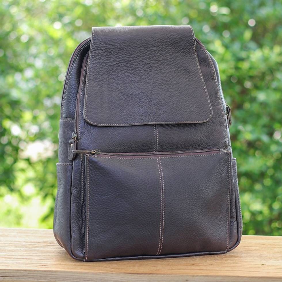 Handcrafted Travel-Friendly Chocolate Leather Backpack 'Adventurer Days in Chocolate' Item ID: 2671797738