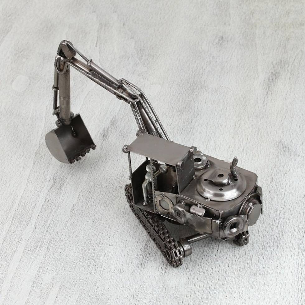 Handcrafted Upcycled Metal Auto Parts Sculpture from Mexico 'Excavator' Item ID: 2669926974