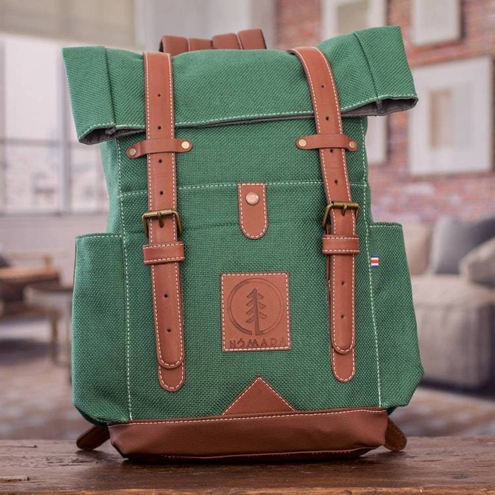 Handcrafted Viridian Acrylic Leather-Accented Backpack 'Viridian Journey' Item ID: 2676659662