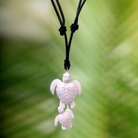 Handcrafted White Turtle Pendant and Leather Cord Necklace 'Swimming with Mother' Item ID: 2669921843