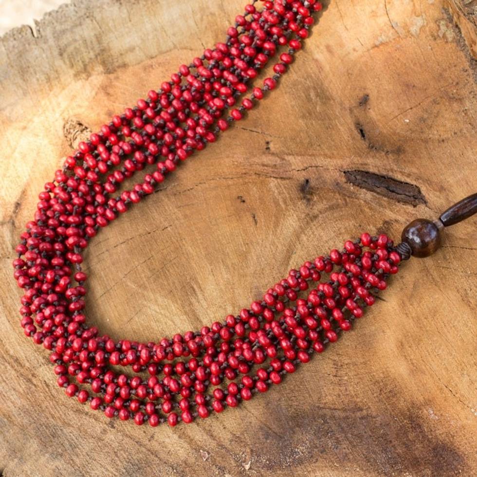 Handcrafted Wood Beaded Necklace 'Red Muse' Item ID: 2671802608