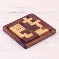 Handcrafted Wood Puzzle in Brown and Beige from India 'Mental Challenge' Item ID: 2669925029