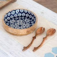 Handcrafted Wood Salad Bowl and Servers 3 Piece Set 'Delhi Lotus' Item ID: 2669943758