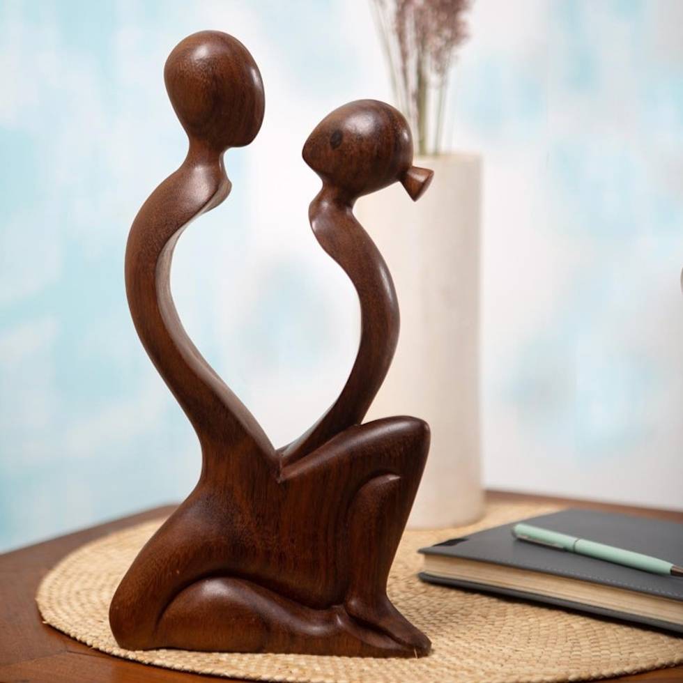 Handcrafted Wood Sculpture 'Talk To Me' Item ID: 2669891584