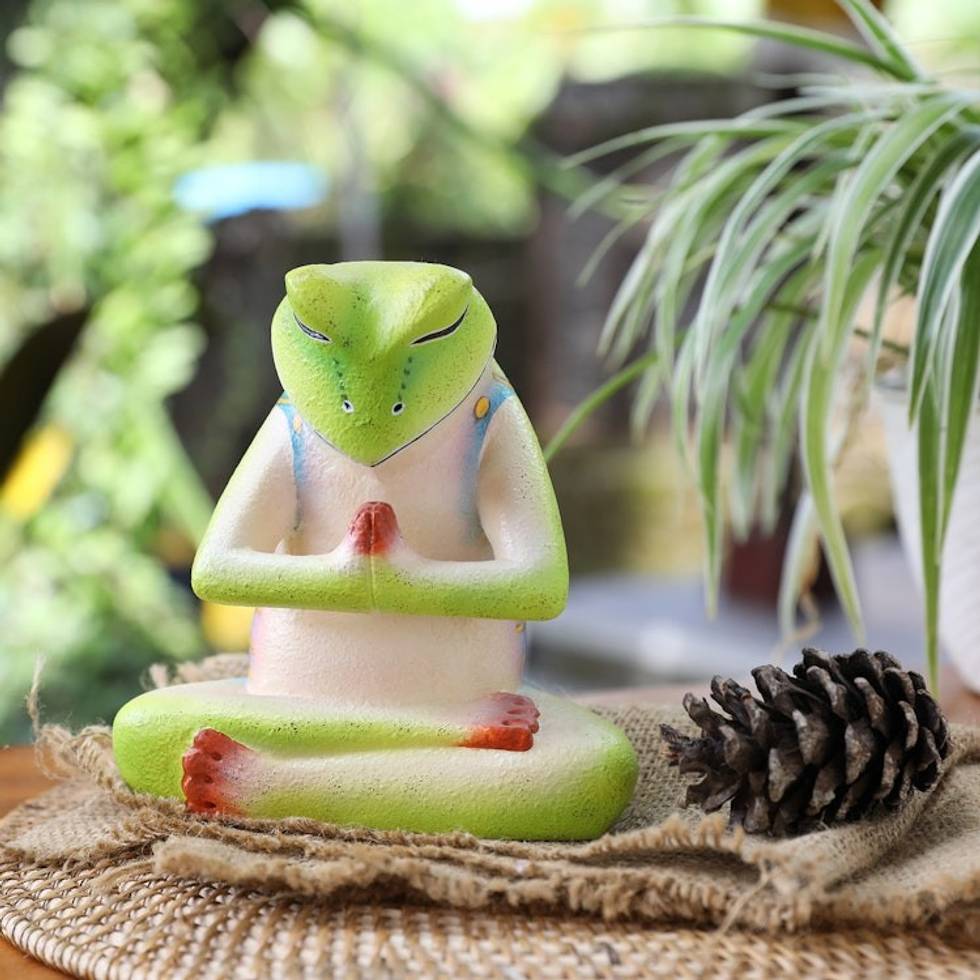 Handcrafted Wood Sculpture 'Froggie Prayer' Item ID: 2671480561