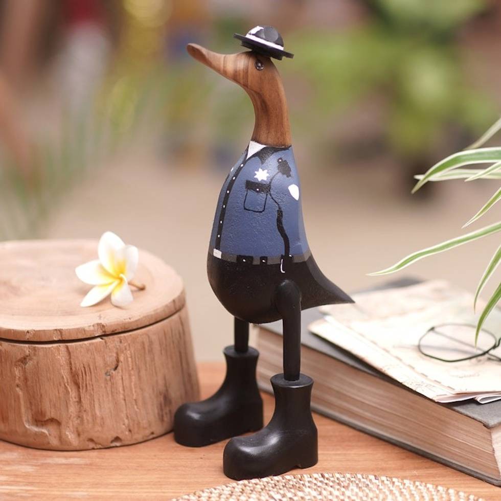 Handcrafted Wood Sculpture of Police Officer Duck 'Officer Duck' Item ID: 2671820713