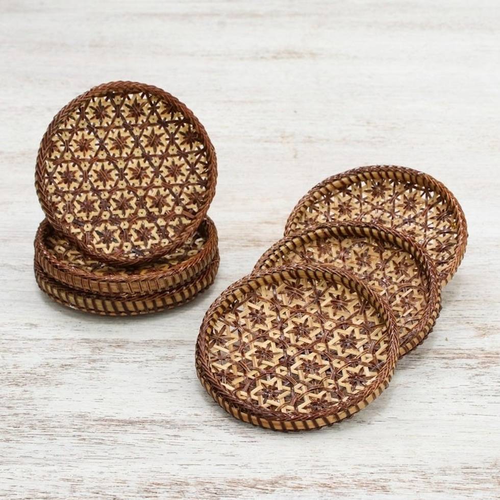 Handcrafted Woven Flower Motif Bamboo Coasters Set of 6 'Pikul Hospitality' Item ID: 2671799514