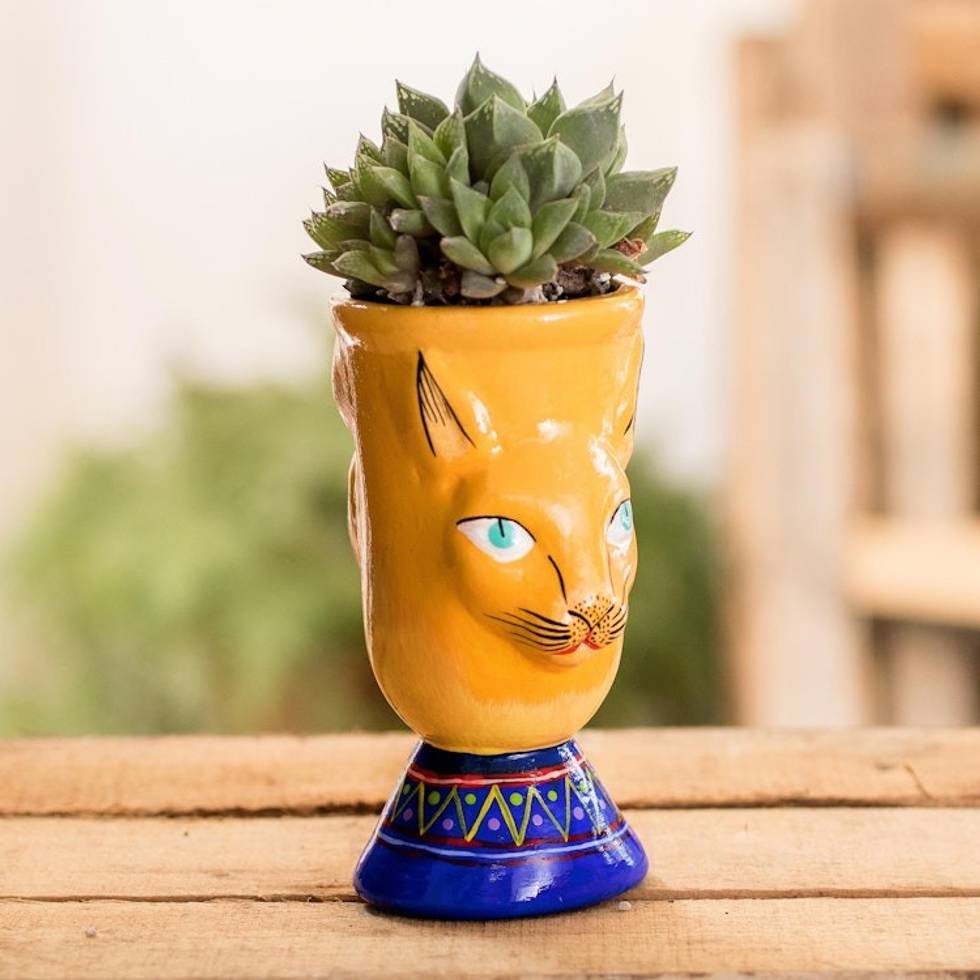 My parents love art and love their Siamese cats! This was the perfect Christmas gift for them. My mom has placed one of her many succulents in the "kitty-pot" as she calls it, and it is part of her table centerpiece. My dad says it reminds him of a feline Frida Kahlo! They are both enjoying it, and it brings smiles every day!