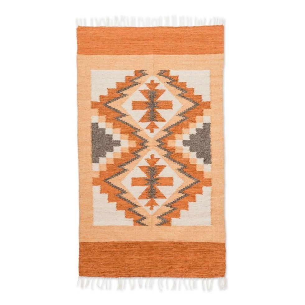 Handloomed Acrylic Geometric Area Rug in Orange 2.5x4.5 'Celestial Diamonds' Item ID: 2671626684