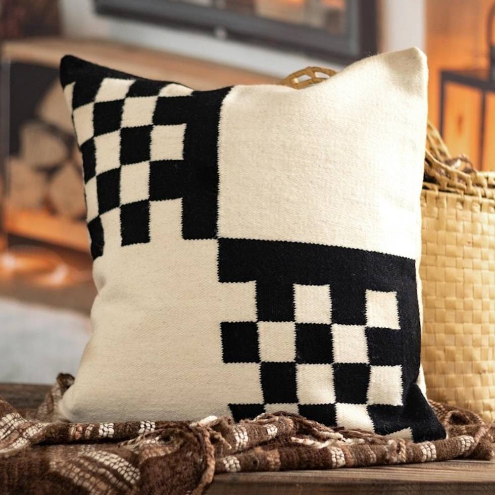 Handloomed Black and Ivory Cushion Cover 'Semaphore' Item ID: 2671691515