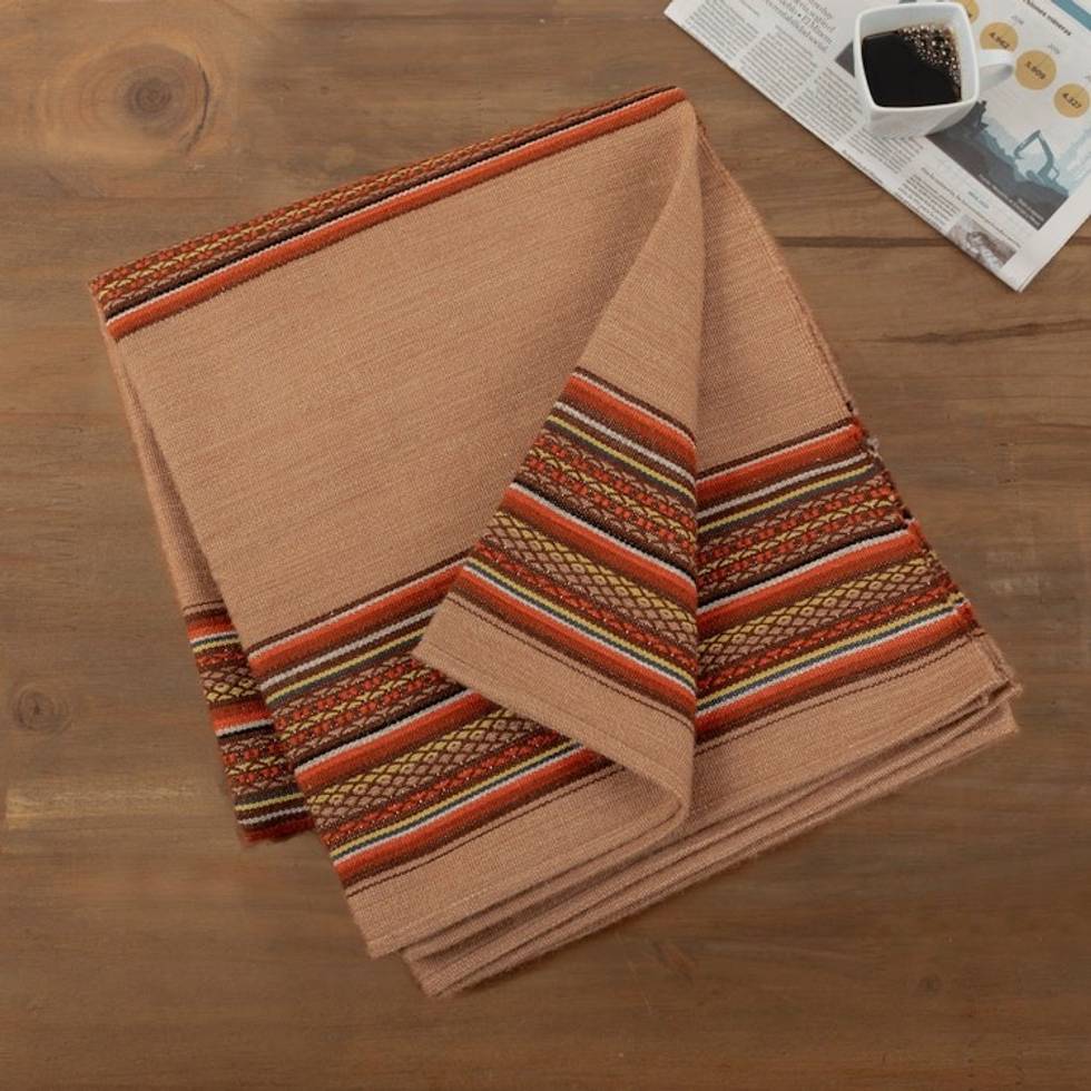 Handloomed Brown and Orange Alpaca Blend Throw Blanket 'Huanca Glory' Item ID: 2671697876