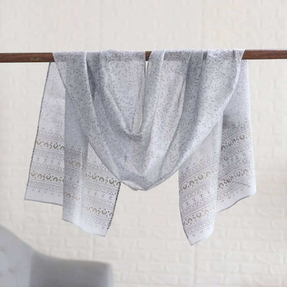 Handloomed Cotton Blend Ash Shawl with Printed Leafy Details 'Ash Elegance' Item ID: 2671787495