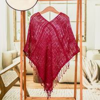 Handloomed Cotton Poncho 'Fresh Berry' Item ID: 2669933757