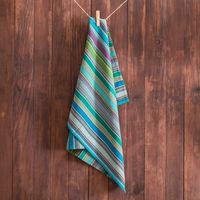 Handloomed Cotton Striped Napkin in Blue and Green Hues 'Delicious Views' Item ID: 2671770279