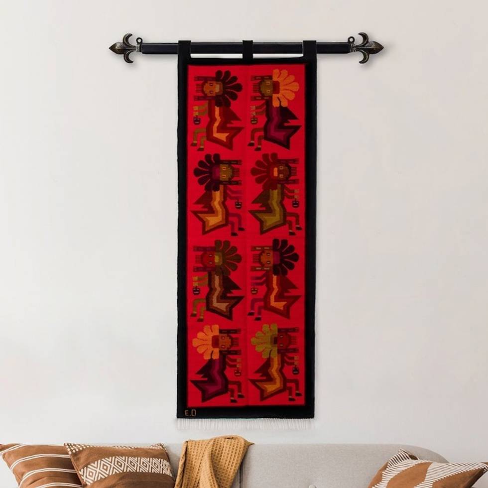 Handloomed Cultural Wool Antarqui Tapestry in Red and Brown 'The Antarqui Myth' Item ID: 2669891309