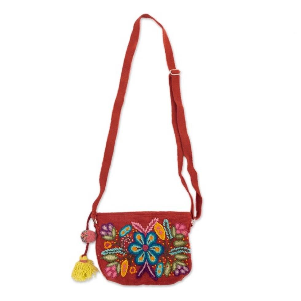 Handloomed Floral Spring Alpaca Sling with Adjustable Strap 'Andes Bouquet' Item ID: 2671399672