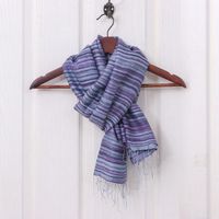 Handloomed Fringed Striped Blue, Grey and Purple Silk Scarf 'Night Iridescence' Item ID: 2671646619