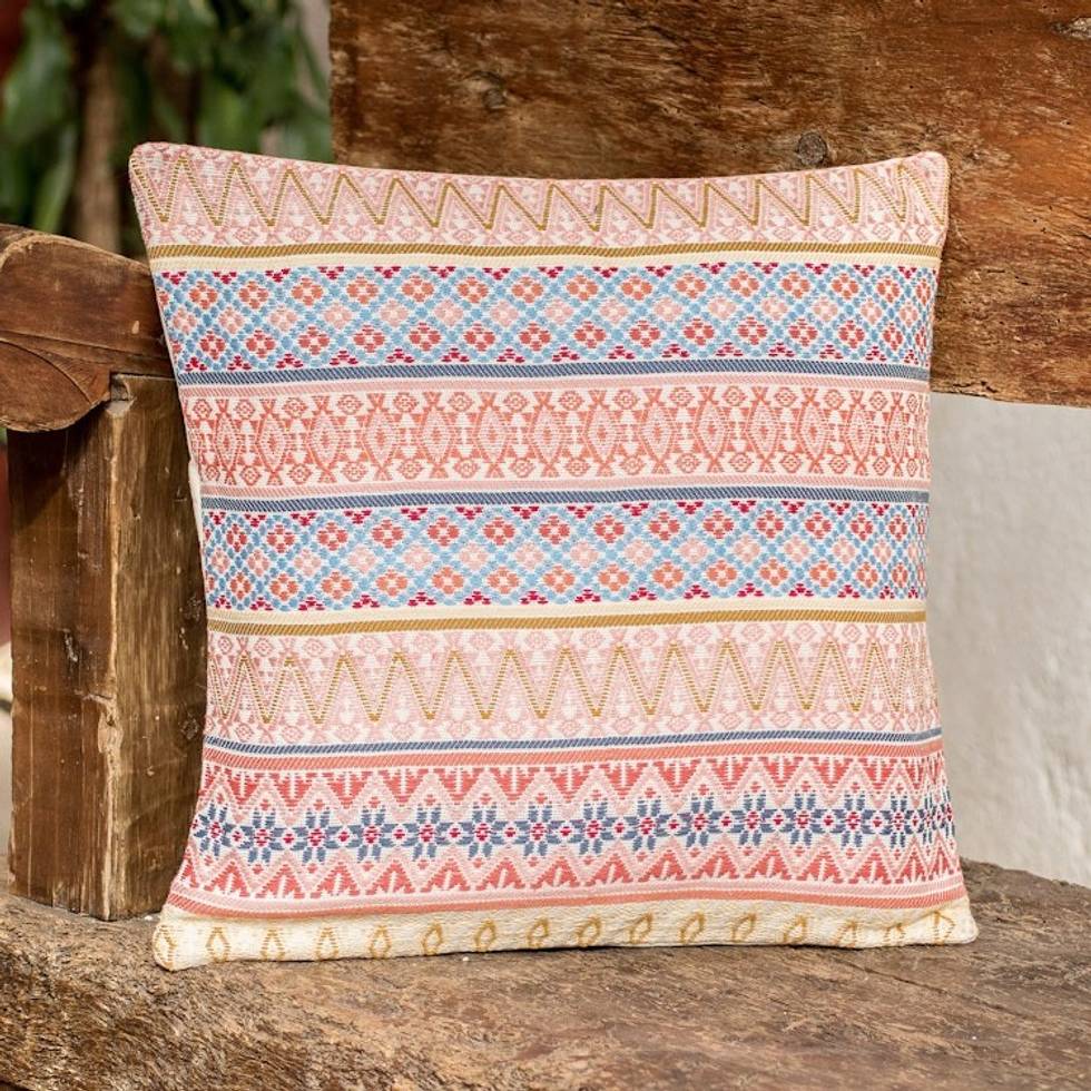 Handloomed Multicolor Cotton Cushion Cover from Guatemala 'Strawberry Inspiration' Item ID: 2669934755