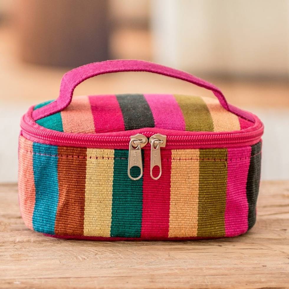 Handloomed Multicolor Striped Cotton Cosmetic Bag Small 'Tropical Ideas' Item ID: 2671770386