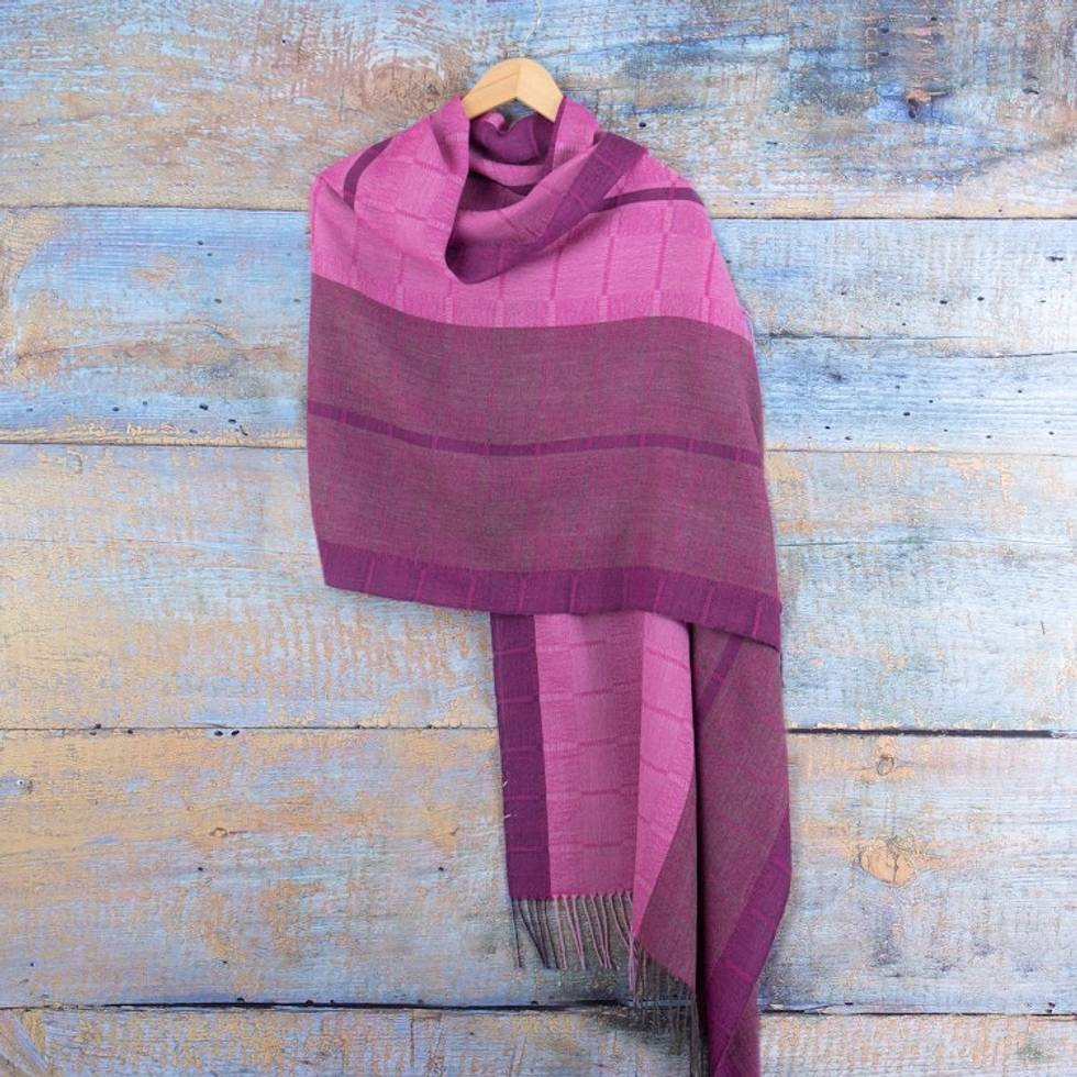 Handloomed Soft Lilac and Plum 100 Baby Alpaca Shawl 'Andean Elysium' Item ID: 2671820342