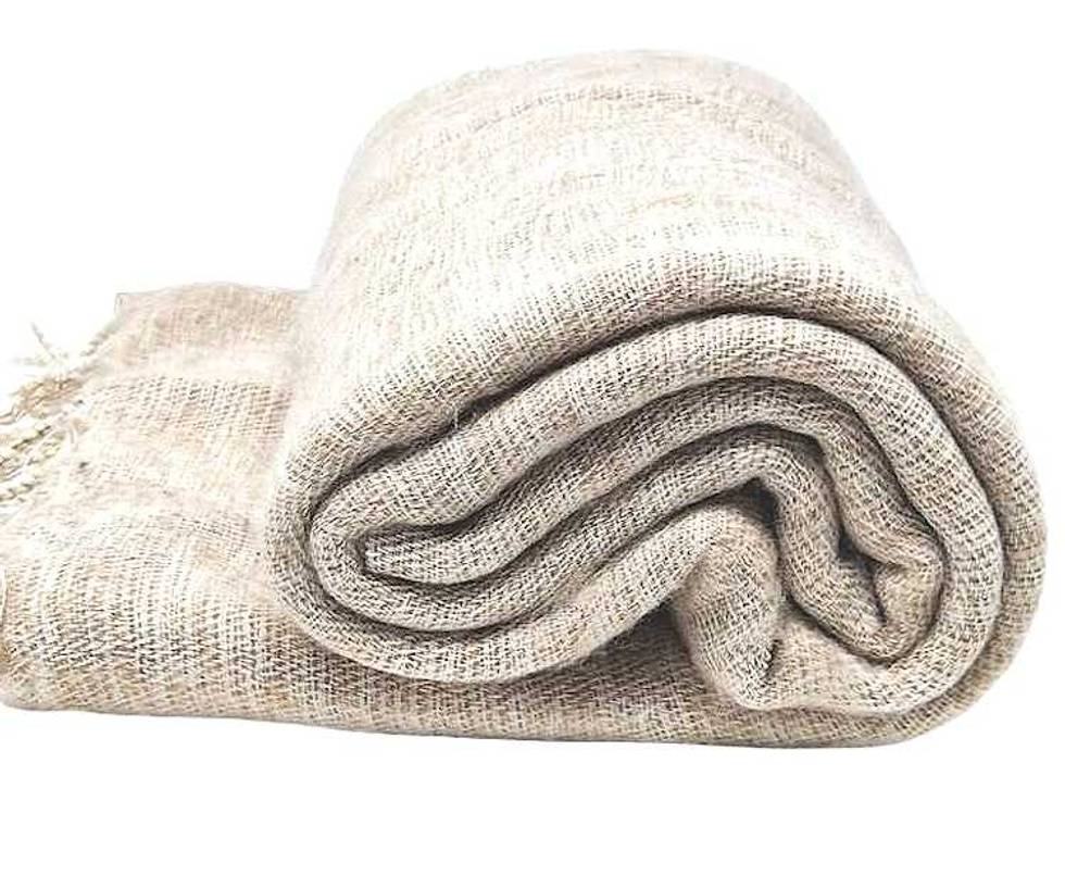 Handloomed Soft, Warm Yak Wool Throw Blanket or Wrap - Wheat Item ID: 2674383047